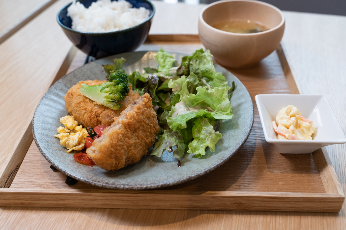 「メニューのアイデアは僕とnicoの森さんと一緒に話し合って決めました。メンチとコロッケを使わせて頂けるというお話だったので、それをどうやって定食屋さんに出てきそうな定食ではなくて、このお店に合いそうな見た目に出来るかなといろいろと考えていたら、コロッケの上にソースをかけるよりも下にソースを溜めたその上にコロッケやメンチを置いてほかの野菜と合わせることでカフェメニューの定食として出せたのではないかと思っています。」
