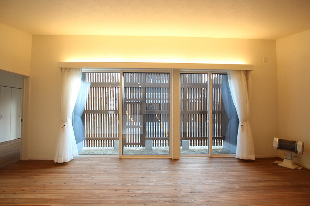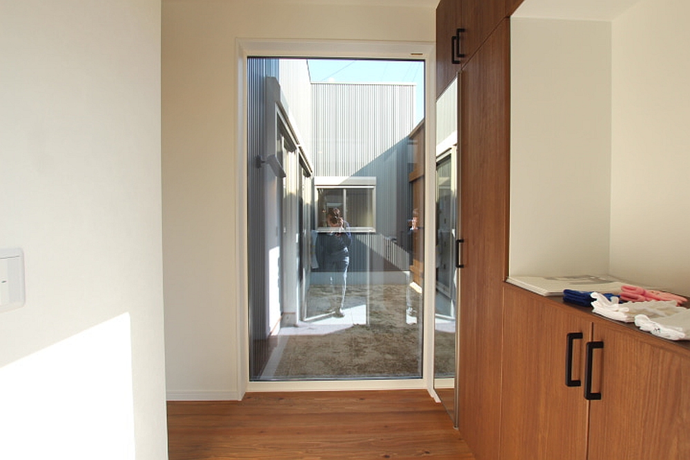 ▼玄関からも中庭を望む。将来的に中庭がどう変化していくのか楽しみ。
