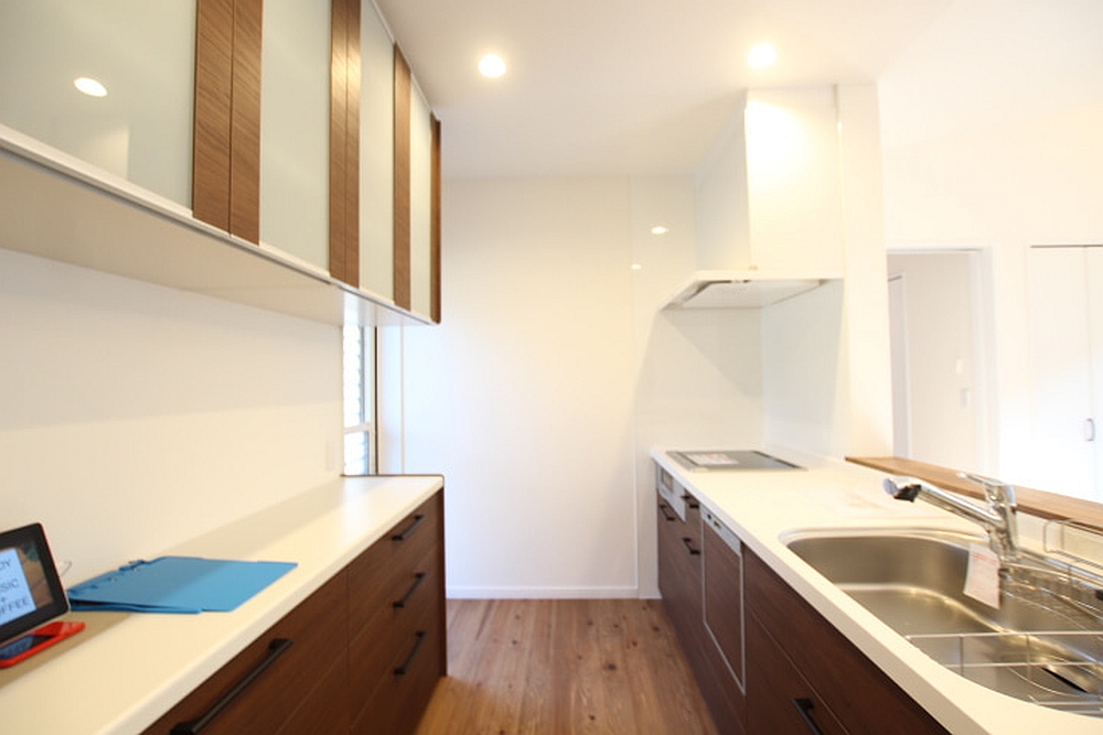 ▼木目調のキッチン、セレクトで全体の印象も変わる。