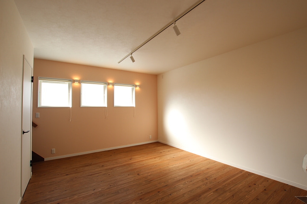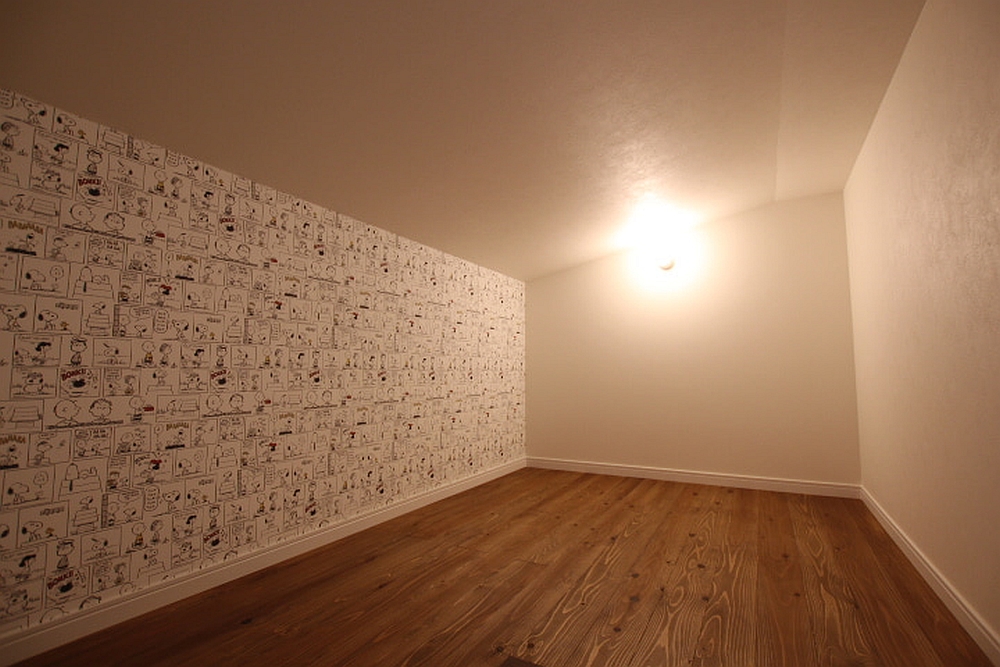 ▼西側の室内はクロスとペンダントライトをポイントに。