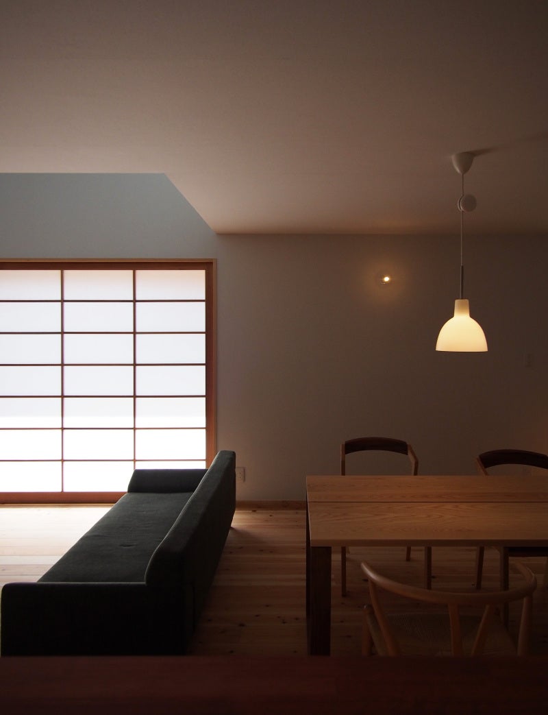 「サッシも今回2mを使ってますけど、よそはおそらく2m20cmの縦長のサッシを使っていますよね。そうすると背が高いし、高級感があると思われていますけど、実はそうではないんです。低いほうが広く感じるし、落ち着いた空間が出来ますから。それは吉村順三先生の設計を学んでいる人達はそういう形にします。中には2m10cmくらいにする設計士の方もいますね。さすがにそこまでやると、お客さんに「ちょっと低いですね。」と言われそうです(笑) でもね、慣れたら絶対にイイですよ。」