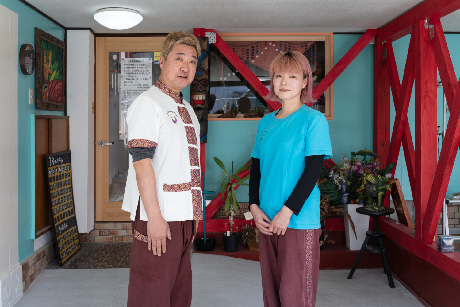 充亮&浩子「タイのマッサージはユネスコの世界無形文化遺産に登録されています。世界で一番メジャーなマッサージなのに、このあたりの方々にはまだあまり知られていないですね。施術してる僕たちはもっと広まって欲しいという思いがあります。タイの学校にはブラジルやヨーロッパの方など世界各地から数多くいます。移転した古津賀の新店舗には部屋数もあるので、スクールも可能かなと思い再開しました。このお店のスクールで技術を学んでいただくことでタイに行く時間がない方でも、講習を受けて貰うとタイの卒業証書が出せます。スクールを再開することで、タイのマッサージを知って頂くキッカケにもなるかな。ずっと変わらず思ってることですが、疲れてる方の硬くなった筋肉をほぐすのもそうですけど、身も心も疲れを取り除いて毎日ハッピーに過ごせたらいいかな。そのお手伝いですね。これを機会に、ぜひ当店で一度マッサージを受けてみて欲しいです。」
