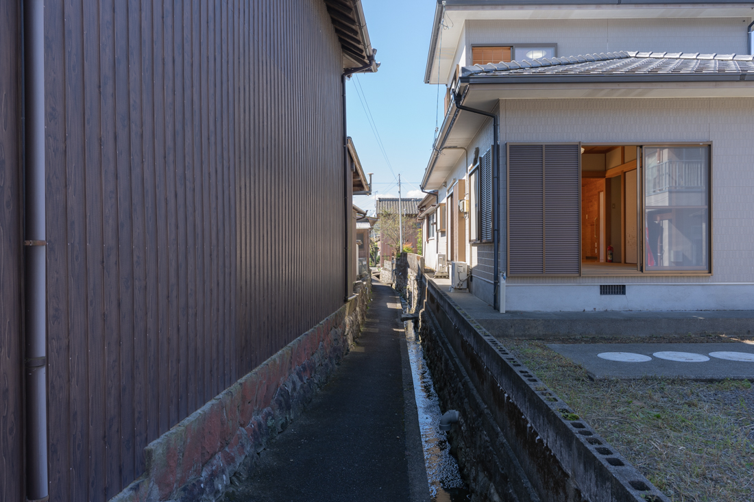 建物の南側にある細い道