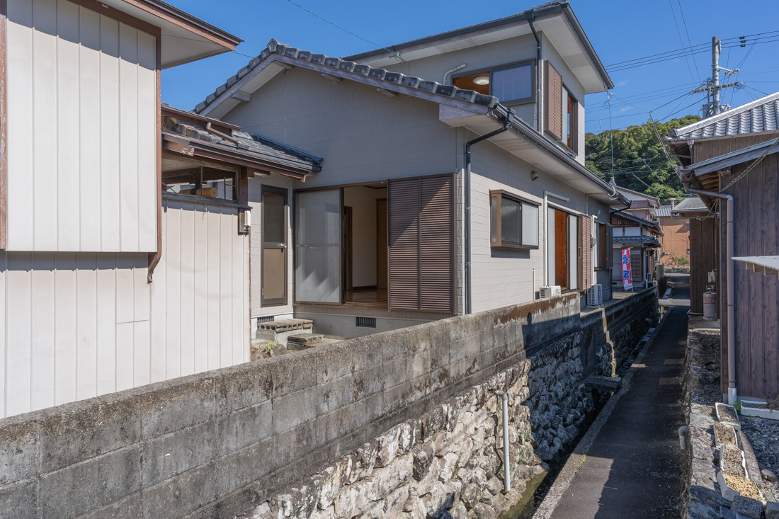 建物の西側 古家の出入口が見えます(手前の白い建物は含まれません)
