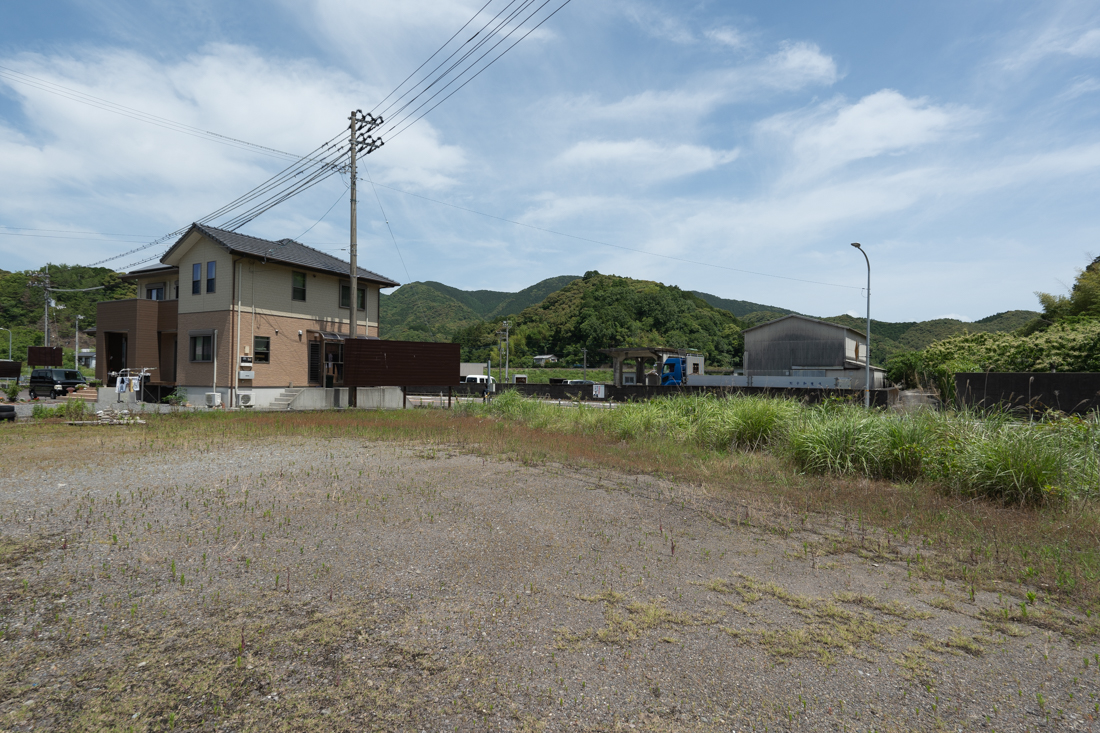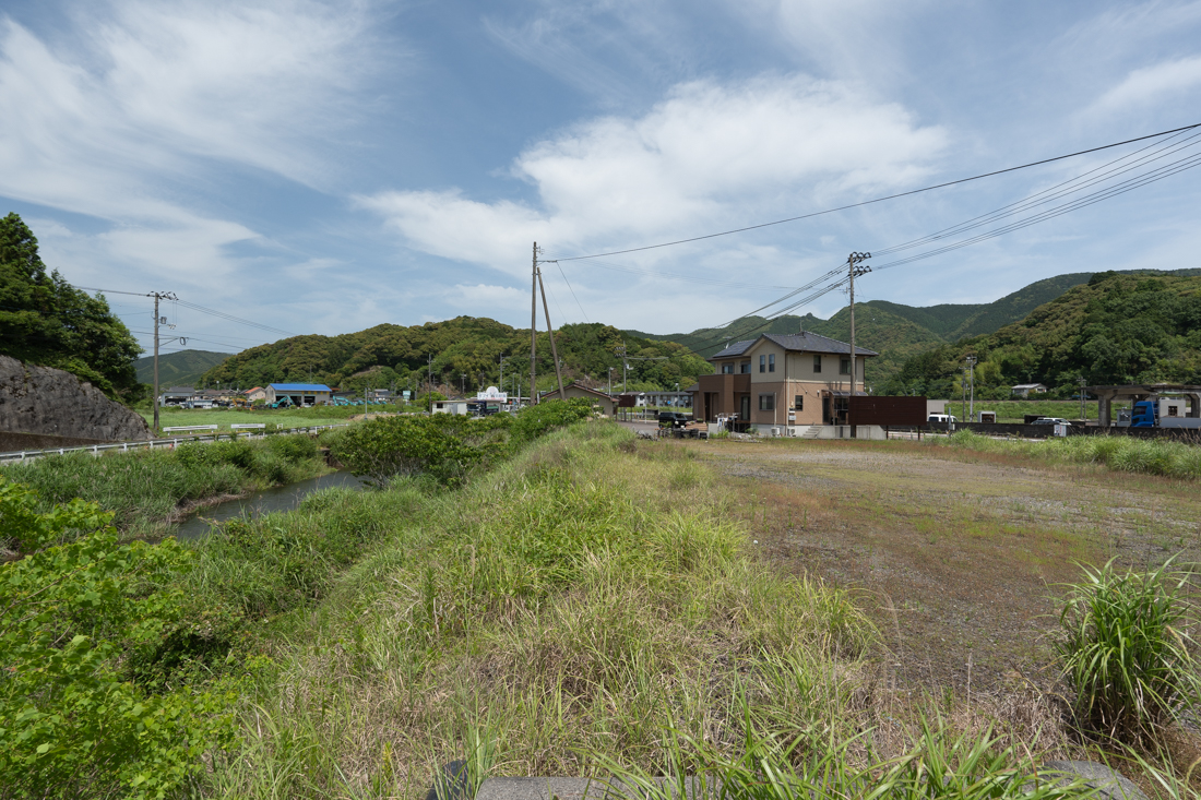 土地の南西側(道路の反対側)に川が流れています