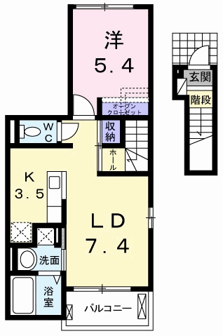 - 1LDK(LD7.4・K3.5・洋5.4) / 41.26㎡