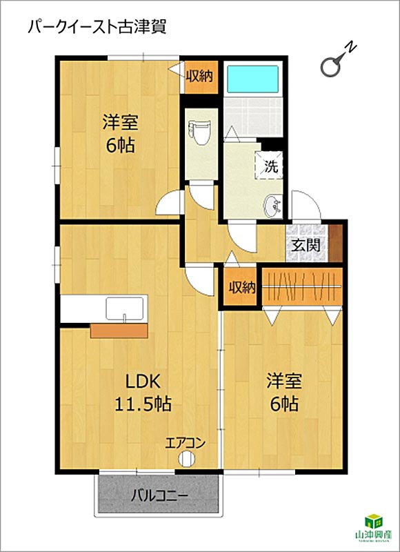 2LDK(LDK11.5・洋6・洋6) / 53.76㎡