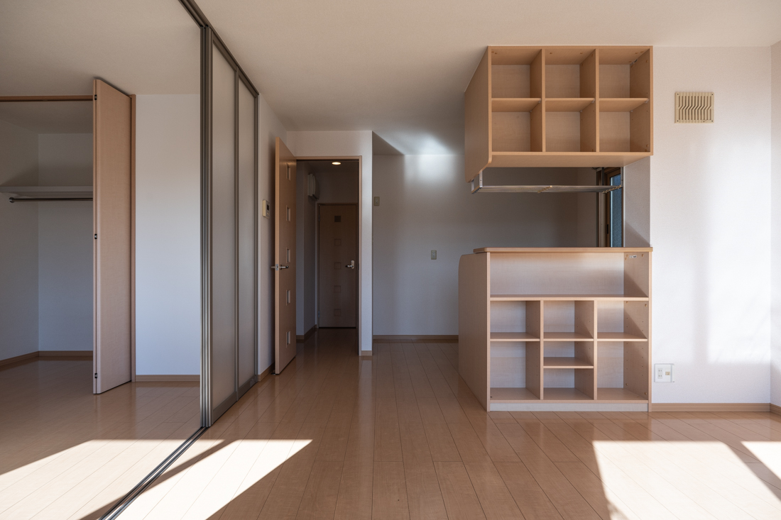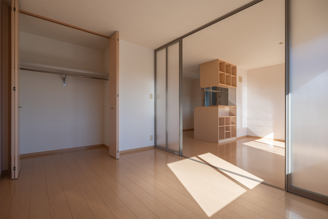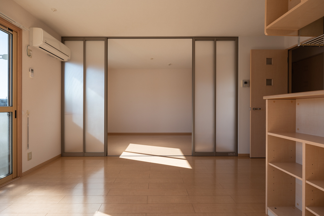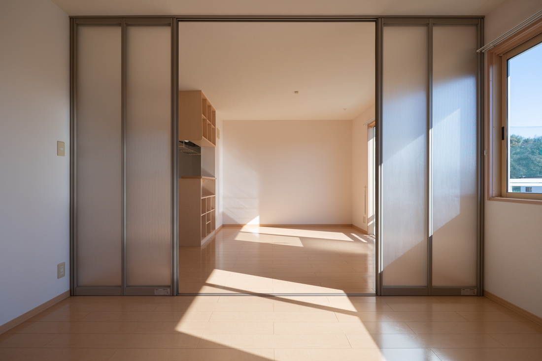 スライティングドアーを閉めるとLDKと洋室を仕切ることができます