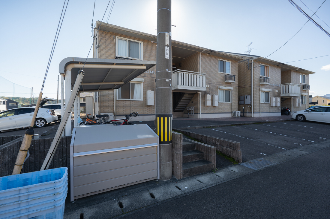 ゴミステーションとその後ろに駐輪場