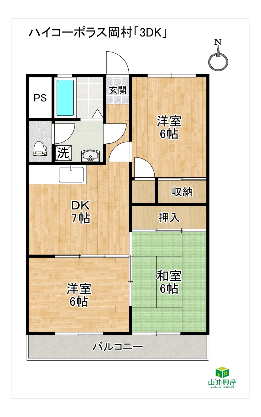 『3DK+駐車場2台込』で6万円の賃料設定や校区が近い事も嬉しいポイント。