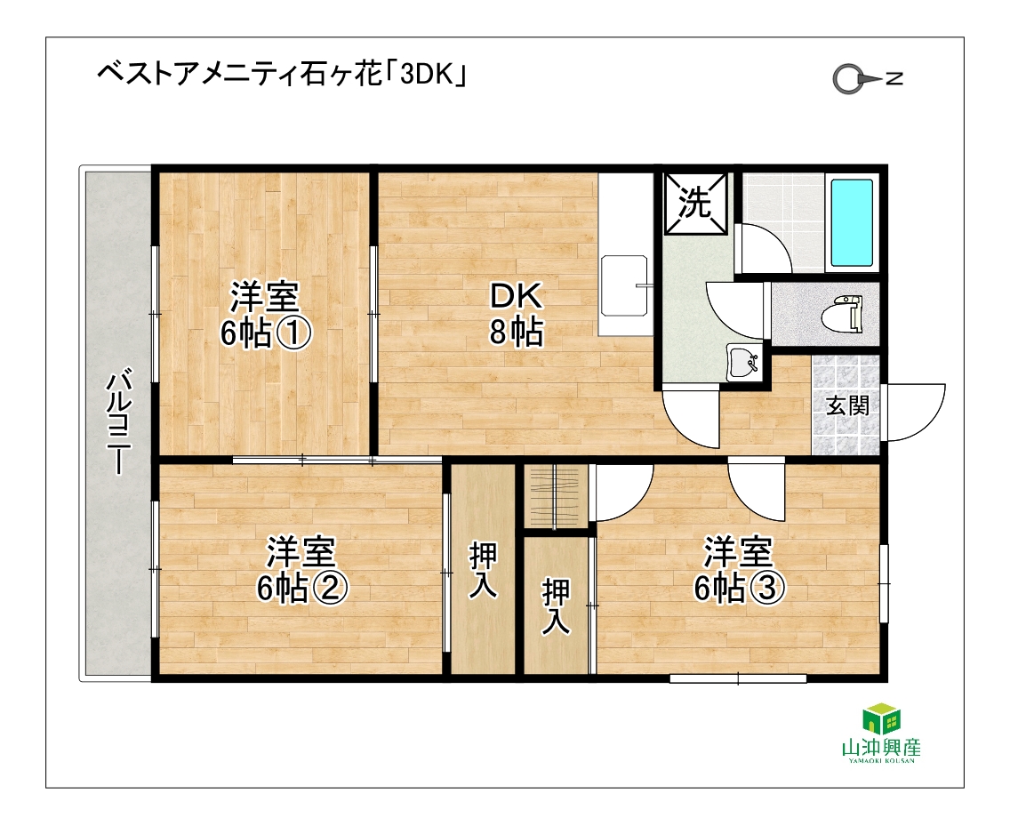 - 3DK(DK8・洋6・洋6・洋6) / 60.47㎡