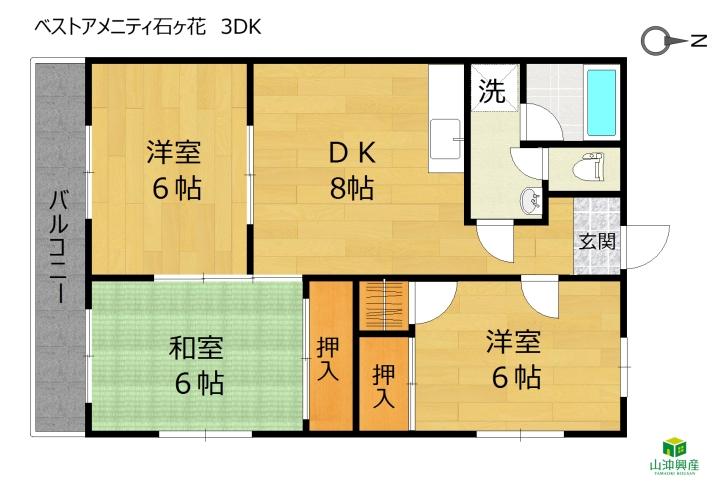 - 3DK(DK8・洋6・洋6・和6) / 60.47㎡