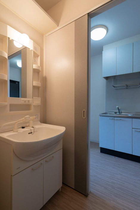 洗面スペースとキッチンスペースの間には引き戸があります
