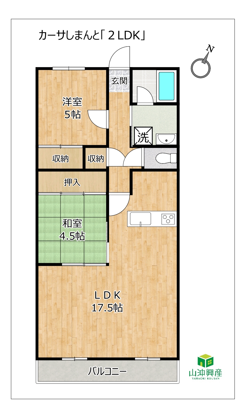 - 2LDK(LDK17.5・洋・和4.5) / 61.8㎡