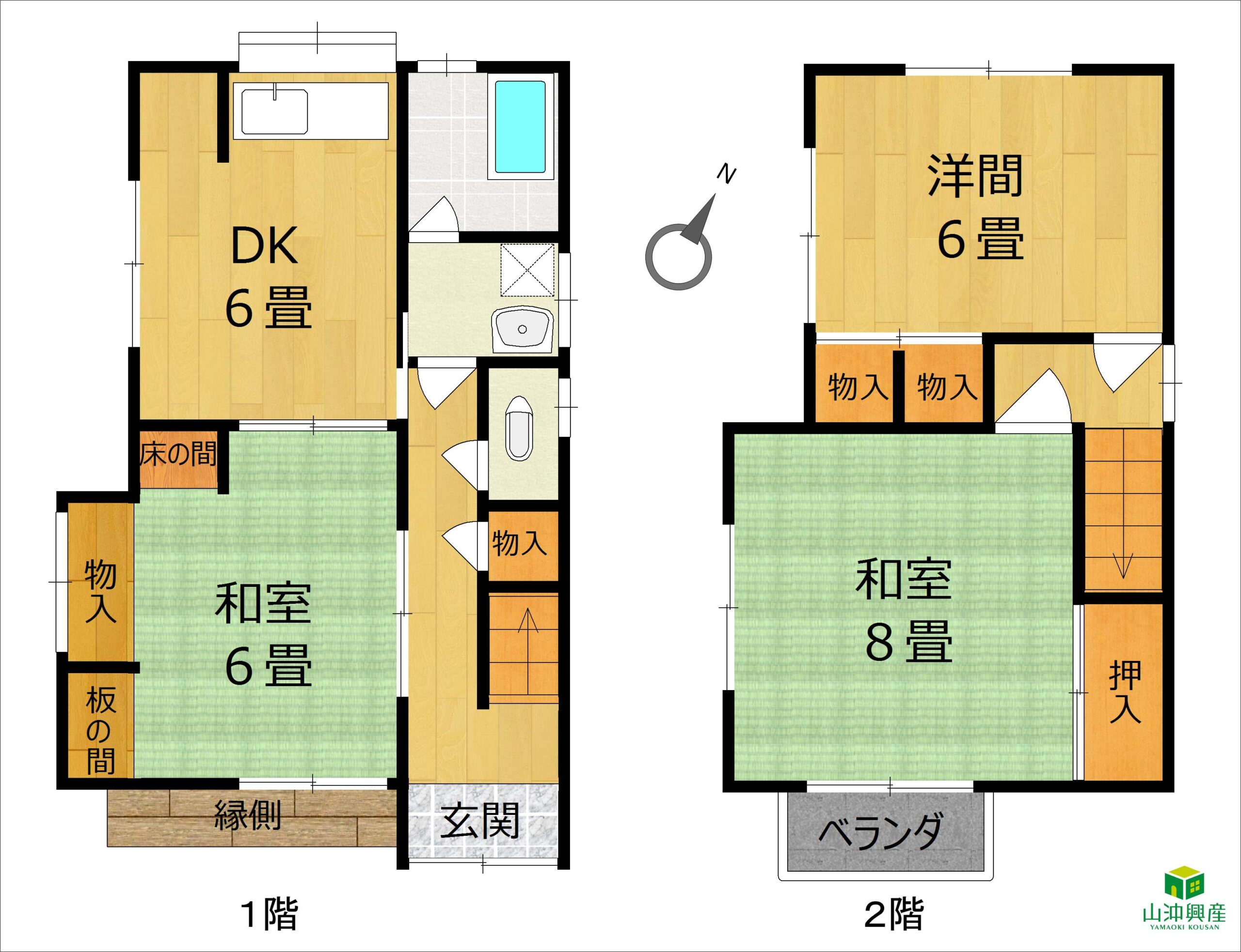 - 3DK (1階 DK6・和6 2階 和8・洋6) / 69.75㎡