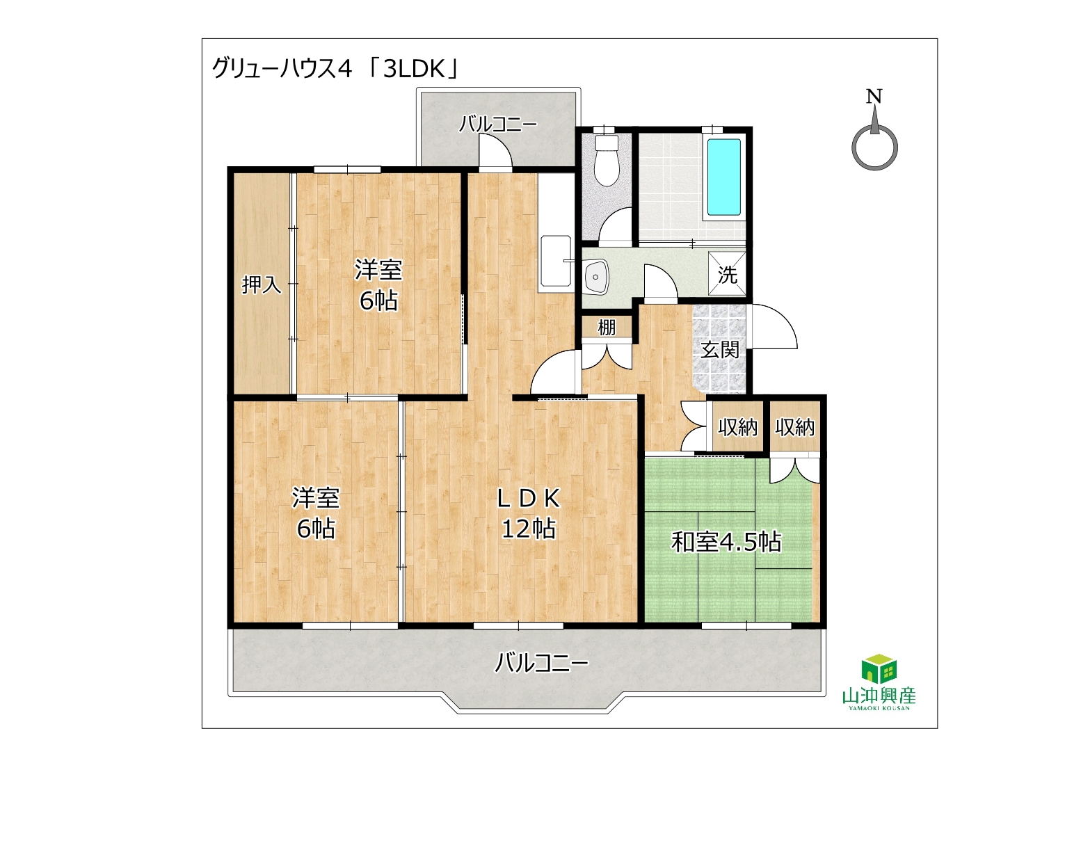 3LDK (LDK12 洋6×2 和4.5) / -㎡